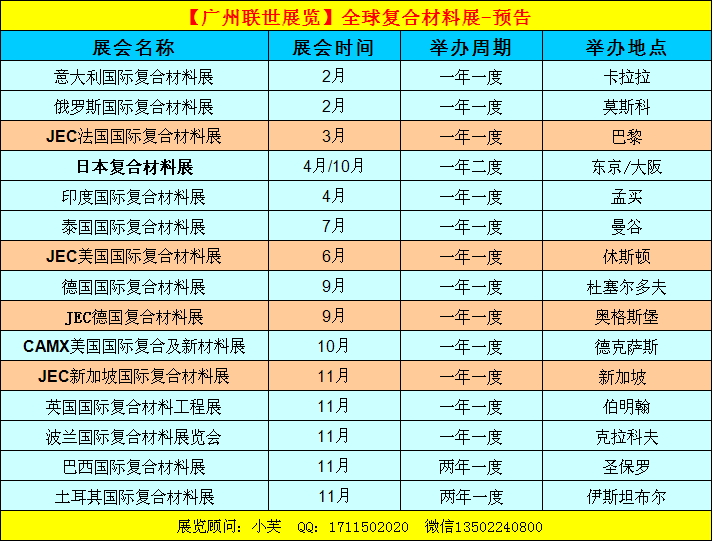 JEC法国复合材料展享誉全球,必将为您开拓法国甚至欧洲复合材料市场提供最好的资源!机不可失,失不再来,还等什么,赶紧报名吧,联世展览将竭诚为您提供最优质的服务!参展参观热线:020-29819080/82/83