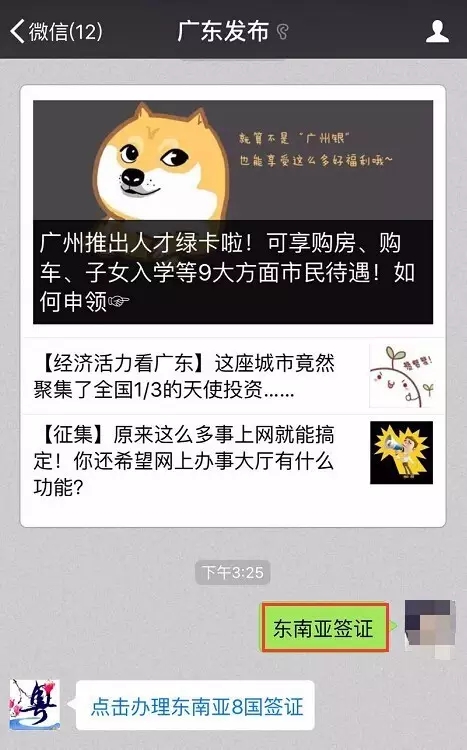 ①关注“广东发布”微信,回复关键词“东南亚签证”即可办理。