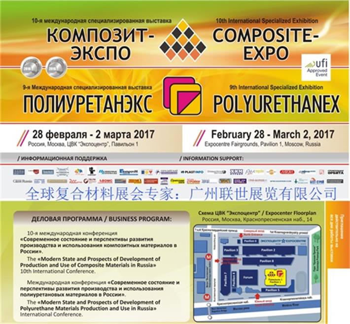 2017年俄罗斯国际复合材料展览会Composite-Expo 将于2017年2月28-3月2日在俄罗斯莫斯科国际展览中心火热开展!联世展览做为中国唯一指定组团机构,展团已蓄势待发!
