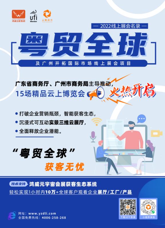 在现阶段全球大流行病的环境下,为尽最大可能减轻新冠疫情对国际经贸活动的影响,广东省商务厅关于组织“粤贸全球”线上展会,组织实施以商务厅为主体、全年有效的“线上展览”系列活动,尽最大可能减轻新冠疫情对各行各业国际经贸活动的影响。