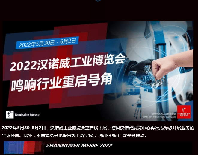 2022汉诺威工业博览会重启线下展!“数字化和可持续性”是本届汉诺威工业博览会的主题关键词。