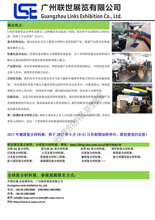 2017年德国复合材料展,将于2017年9月19-21日在斯图加特举行,联世展览约定您!